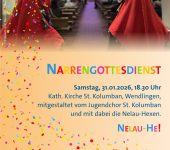 Nelau-He in St. Kolumban!Herzliche Einladung zum Narrengottesdienst am Samstag, den 31. 01., um 18.30 Uhr in der Kirche St. Kolumban. Dieser Gottesdienst zur …