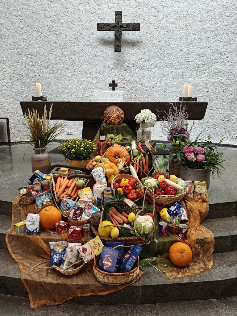 Am ersten Oktoberwochenende wurde in unseren Gottesdiensten Erntedank gefeiert. Es konnten wunderschöne Erntealtäre gestaltet werden, die unsere Dankbarkeit für die Gaben der Schöpfung, für alles Gute in unserem Leben zum Ausdruck bringen. Die Lebensmittel werden an CARIsatt-mobil gespendet.
