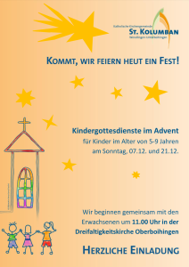 Am Heiligen Abend gibt es um 14:30 Uhr in der St. Kolumban-Kirche in Wendlingen eine Krippenfeier mit Krippenspiel. Traditionell spielen dabei die Kommunionkinder mit. Wir würden uns sehr freuen, wenn wir in diesem Jahr wieder an diese schöne Tradition anknüpfen könnten und Ihre Kinder Lust und Zeit hätten, dabei zu sein. Gerne dürfen auch die jüngeren Geschwister mitkommen.