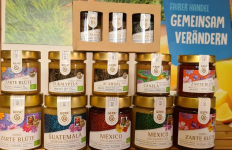 Honig in den Weltläden ist sortenrein, unvermischt, cremig oder flüssig, und schmeckt!