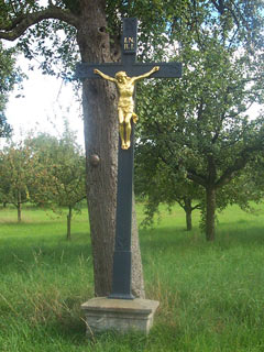 Mühlwegkreuz Der Mühlweg verlief vor dem Bau der Autobahn schräg vom Dreschschuppen (Hauptstraße) nach Tachenhausen. Das gusseiserne Kreuz wurde 1998 von privater Seite restauriert.